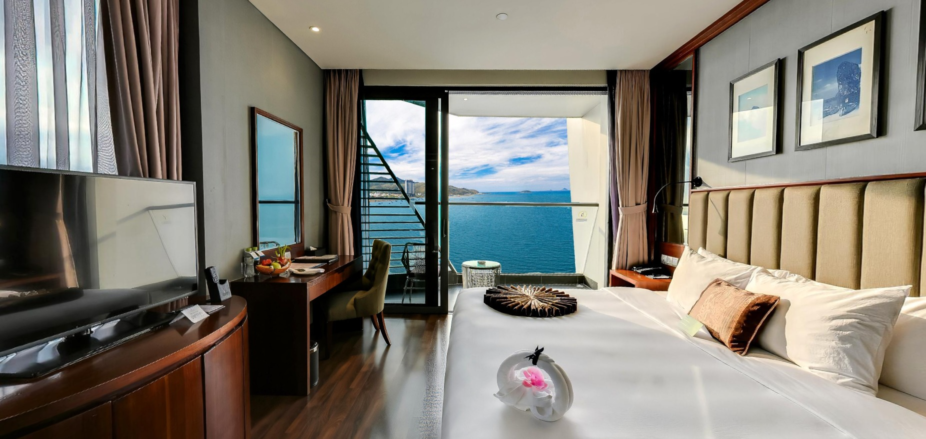 With two spacious balconies facing the vast ocean and Co Tien Mountain, Pacific Double offers a unique view and an exclusive outdoor bathtub. Perfect for soaking, sunset-watching, and creating unforgettable moments in a luxurious, poetic atmosphere.