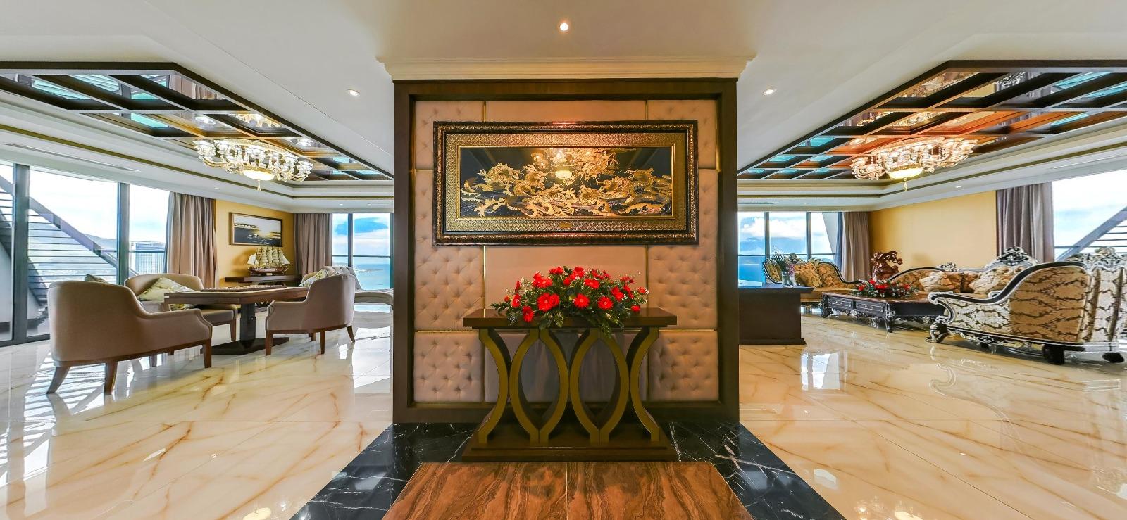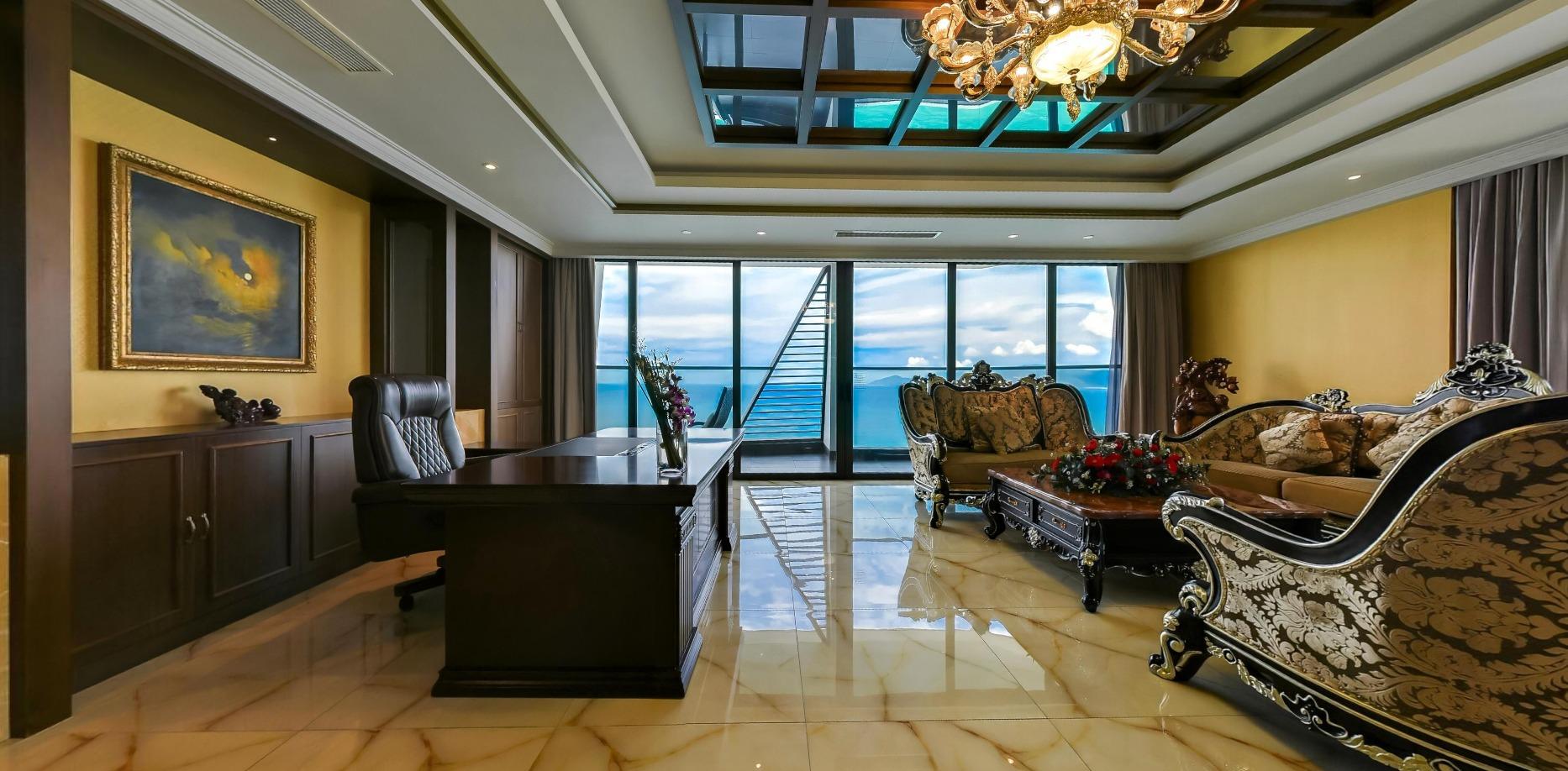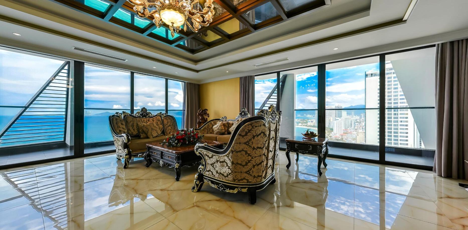 Located on the 26th floor—the highest in the hotel—the Presidential Suite boasts 310m² of living space and 360-degree views of Nha Trang Bay, the city, and Co Tien Mountain. Designed for world leaders, elites, and those seeking absolute exclusivity.