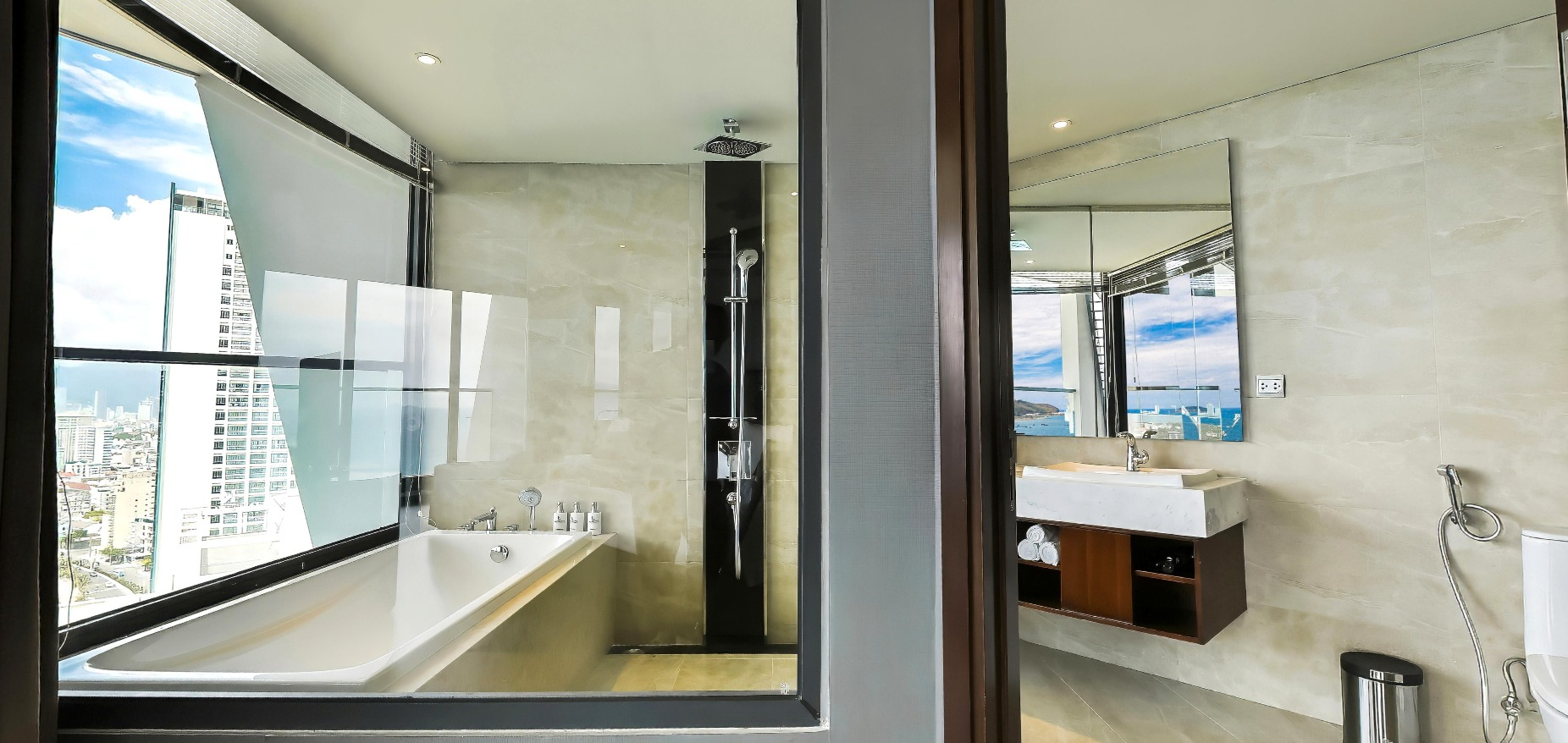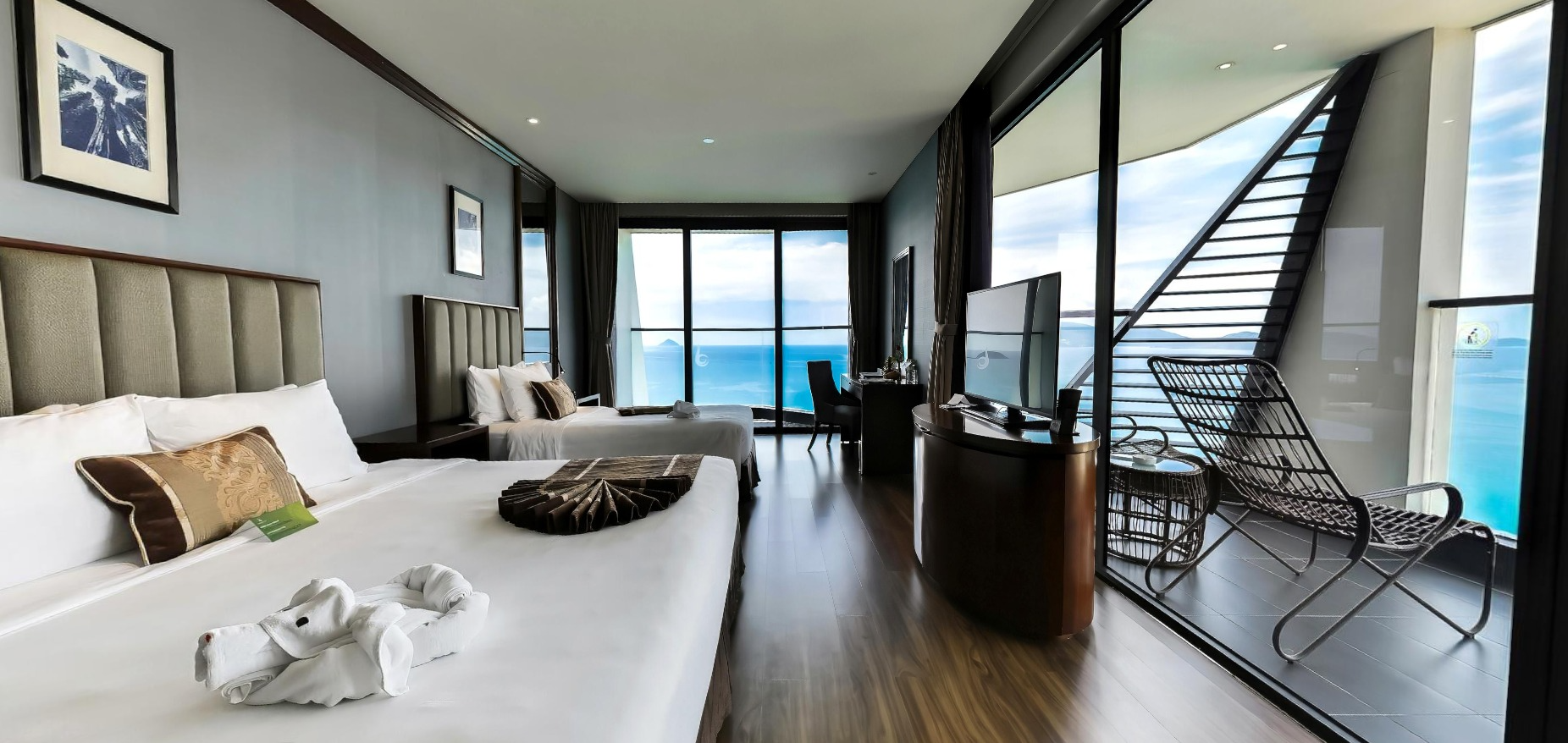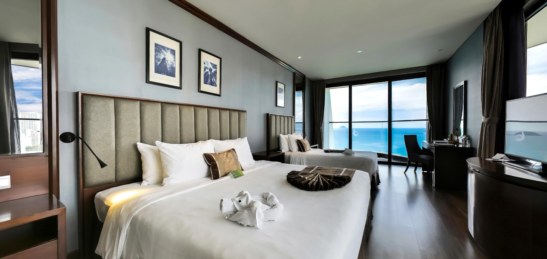 Sở hữu hai ban công riêng biệt hướng trực diện biển và toàn cảnh thành phố, căn phòng Pacific Triple mang đến trải nghiệm hiếm có: ngắm bình minh rực rỡ mỗi sớm mai, lắng nghe tiếng sóng biển êm đềm, thu trọn vào tầm mắt vẻ đẹp vững chãi của Hòn Chồng cùng đại dương bao la phía trước và chiêm ngưỡng khung cảnh thành phố Nha Trang lung linh ánh đèn khi về đêm – một bản hòa tấu sống động giữa thiên nhiên và nhịp sống đô thị.